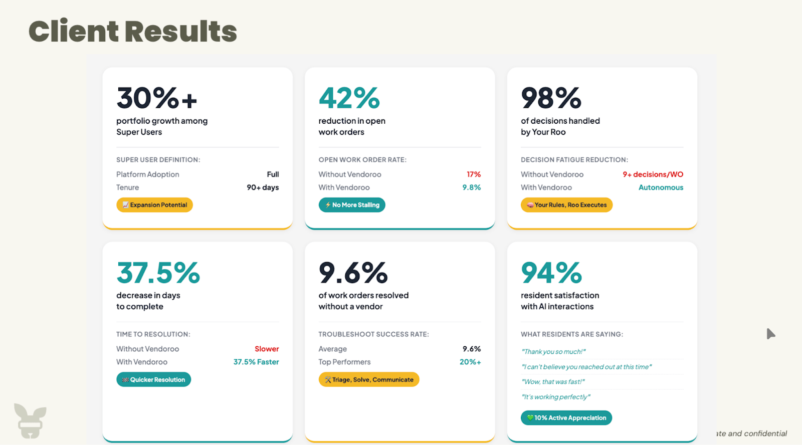 • About 10% get closed without ever sending a vendor out (resident fixes it with the right troubleshooting)